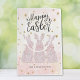 Celebre a Páscoa com esta charmosa carta com três belas coelhos adornada com intrincados padrões de rendas e arcos cor-de-rosa macio. Colocada contra um pano de fundo branco de estrelas ouros e uma lavagem a aquarela suave, esta design exumenta o calor e a alegria. Personalizado com um nome de família ou texto personalizado, torna-se uma proteção única para os seus entes queridos. Ordenar hoje que se adicione um toque festivo.