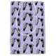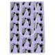 As pegadas infantis de tinta manchadas em recém-nascidos em padrões de bolinhas roxos e brancos.