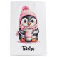 Um pinguim adorável com chapéu cor-de-rosa e cachecol segurando uma xícara de café. Personalize com nome ou monograma. Para amantes de os animais e amantes de café.