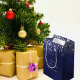 Sacola Para Presentes Média Pó branco azul de Natal prateado