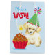 Feliz aniversário com este design bonitinho com um cachorrinho de Toy Poodle que veste bonitinho e festejante com um cupcake de aniversário. Feliz aniversário na frente e "Faça um Desejo!" nas costas. O texto pode ser facilmente alterado; basta clicar no botão personalizar.
