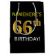 Sacola Para Presentes Média Preto, Faux Dourado 66º aniversário + Nome persona