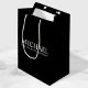 Padrinho de casamento Personalizado Moderno Preto e Branco Bag Presente com o nome do padrinho de casamento personalizado e o título no estilo clássico da fonte serif. Também perfeito para dama de nozes, madrinha de casamento, florista, melhor homem e portadora de anéis.