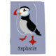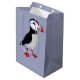 Puffin Design Gift Bag com cor de fundo personalizável e personalização opcional.