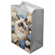 Sacola Para Presentes Média Ragdoll Cat Com Flores De Hydrangea Azuis