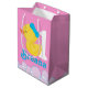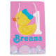 Rapariga Rosa Pato de Borracha Personalizado Saco de Presente Médio de Aniversário, personalize com seu nome e sua idade!