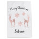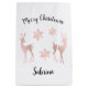 Design de faux rosa de ouro moderno e bonito, flocos de neve e renas de Natal. Personalize-o com sua mensagem e seu nome.