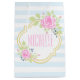 Rosas, folhas verdes e mirtilo em listras azuis, cor-de-rosa e monograma de ouro (ouro não é ouro real, mas cor). Rico, feminino e ornamentado, mas elegante, com um olhar e um sentimento ligeiramente vitorianos. Adequado para muitas ocasiões como chá de fraldas, aniversário etc. Rosa, azul, roxo profundo, verde.