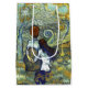 Um design de arte de uma garota e um garoto de mãos dadas andando na floresta.