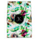 design legal com a ilustração das rosas vermelhas de aquarelas no impressão de textura loura. Monograma personalizado e círculo preto.