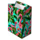 Esta bolsa de presente é mostrada numa impressão de arte tropical flamingos. Tamanho médio mostrado Glossy mostrado Imagem de ações