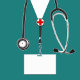 Design de bolsa de doação de enfermeira criativa com esfregões de hospital, estetoscópio e grandes felicitações. Editar texto para adicionar o nome do formando da escola de enfermagem.