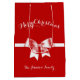 Sacos-presente de Natal Merry, vermelho, branco e verde, com arco e texto personalizável