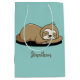 Sloth Design Gift Bag com cor de fundo e texto personalizáveis.