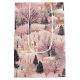 Elegant deer prance through snow covered pink hills among a forest of black trees on this delicate winter pattern.
