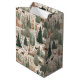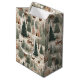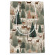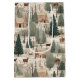 A pleasant winter scene with deer roaming amongst a landscape of village houses and robust pine trees.
