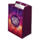 Design da noite da festa de praia de verão decorativa com palmeiras e faíscas ao fundo.