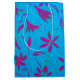 This vibrant floral pattern features playful pink blossoms and leafy accents scattered across a rich teal blue background with a subtle fabric texture. The bold color contrast and hand-painted style create a lively botanical aesthetic full of movement and charm. Inspired by modern surface design and tropical garden themes, this seamless pattern adds fresh energy to any space. Perfect for spring decor, colorful home accents, fashion prints, and nature lovers who appreciate bright florals and artistic textile-inspired design.