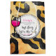Um saco de presente para uma festa de solteira. Um padrão de manchas-leopardo para um fundo. Um copo de vinho legal esboçado em tinta negra grossa. A dentro de vinho que o copo está rosa quente. Cores vivas e brilhantes. Personalize com suas informações de solteira em um círculo desenhado à mão branca. Último fling antes do anel escrito em uma fonte de tendência legal.