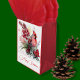 Bonito bolsa de presente de Natal feita em vermelho e branco, com bela trabalho de arte de cardeal vermelho e flores. Personalize o texto, com seu próprio cartões de natal.