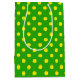 Sacola Para Presentes Média Yellow On Green Polka Dots Pattern Design