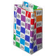 Arte digital abstrato de quadrados brancos e esboçados arco-íris em uma formação cercada com um decote triplo, funcionarios e algumas notas musicais dentro cada uma.
