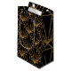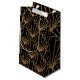 Esta bolsa de presentes tem um design de Arte Deco de ouros e triângulos em ouro num campo de preto.