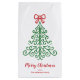 Saco de presente de Natal moderno com um simples e fofo rabisco de uma árvore de Natal com um arco junto com a saudação editável "Feliz Natal" e seu nome.