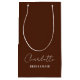 Want to show your bridesmaids some love? Our Bridesmaid Minimalist Script | Brown Small Gift Bag is the perfect way to do just that! Each bag is customized with the name of your bridesmaid, making it a thoughtful and unique gift that they will cherish.