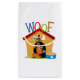 Um cachorro fofo com uma bola e um prato de comida, uma casa de cachorro, e texto colorido que lê WOOF em T-shirts, capuzes, canecas, bolsas, cartões, autocolantes, correntes-chave, botões, ímãs, conselhos de apagar a seco, capas e capas eletrônicas, placas de papel e guardanapos, e muitos outros itens de design de cães!