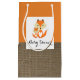 Sacola Para Presentes Pequena Chá de fraldas Laranja Fox Burlap