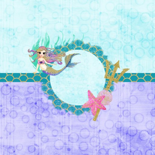 Malha de Aquarela, conchas, tridente, escamas e estrela-do-mar com Para de e Nomes em Roxo, Aqua & Teal com bolhas e Dourados Acentos de Largura. Uma design de sereia gira divertida com Texto Personalizado.