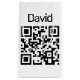 Código QR preto e branco para aniversário em branco com nome personalizado. O nome pode ser editado ou excluído. Digitalize o código na frente com o smartphone para receber a mensagem.