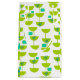 Esta bolsa de presente tem um Médio de século design de meio-círculos verdes que se parecem com copos amarrados com tartarugas e retângulos.