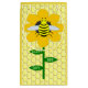 Esta bolsa de presente fantástica apresenta uma imagem gráfica de um belo abelhão amarelo com listras, olhos, antenas e pernas pretas. Tem asas bonito, azuis e brancas. A abelha está sentada no meio de um girassol amarelo-ouro. A flor tem um caule verde e três folhas. A mensagem "dia feliz das abelhas" aparece espalhada pelas três folhas. O fundo é composto por um padrão amarelo de mel.