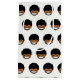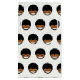 Garotinho sorridente com cabelo preto e preto no design de padrão branco.