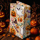 Fantasmas de Halloween, jack-o-lanternas, morcegos e doces.