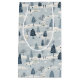 A modern, soft snowy blue and cream Christmas village pattern dotted with small, detailed houses and monochromatic blue trees.