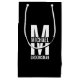 featuring personalized groomsman's monogram, name and title in white bold sans serif font style on black background.