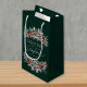 Saco de presente de Natal moderno com elegante verde de inverno e bagas em um fundo verde escuro. O design é acentuado com um texto de estilo manuscrito popular com a sofisticada saudação "Saudações da Estação". Personalize este belo saco de presentes de férias com o seu nome.
