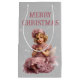 Saco de presente de Natal feliz com uma ilustração nostálgica de uma garota Angélica em rosa-gelo sobre fundo prateado. Um saco de presente exclusivo e grande. Personalize com sua escolha de texto tanto na frente quanto no verso. Tenha um Feliz Natal Nostálgico. Disponível em cores, tamanhos e acabamentos diferentes.