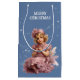 Saco de presente de Natal feliz com uma ilustração nostálgica de uma garota angélica na geada e rosa pálido sobre um fundo azul pálido. Um saco de presente exclusivo e grande. Personalize com sua escolha de texto tanto na frente quanto no verso. Tenha um Feliz Natal Nostálgico. Disponível em cores, tamanhos e acabamentos diferentes.
