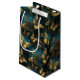 Um pequeno saco de presentes elegante com um padrão de borboletas em matizes de ouro reluzentes e blues brilhantes.