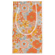 Sacola Para Presentes Pequena Padrão do Flor Retro Laranja