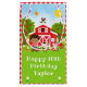 Essa bolsa de presente fofa e divertida pode ser personalizada com um nome ou título como filho, neto, sobrinho, amigo etc. Apresenta um cabeleireiro castanho com pele escura ao lado de um celeiro vermelho com uma vana de vento de galo. Há animais de fazenda adoráveis como uma vaca, porco e galinha. Ao fundo está um céu azul brilhante, macieiras, sol, borboletas e margaridas.
