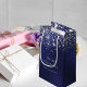 Um fundo azul profundo decorado com pó falso de cinza prateada. A cor azul é irregular. Personalize e adicione seu nome. Com o texto: Feliz Natal. Para embrulho de presente e para favoritos para festas.
