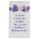 Cussina fala com fita de bolinhas púrpura e branca e flor de cosmos em madeira rústica de cinza leve. O texto pode ser editado.