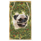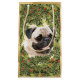 Um retrato bonito de Pug centrado em uma coroa de Natal.