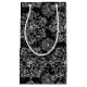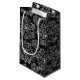 Este saco de presentes de Natal é mostrado em um design de impressão de flocos de neve preto e branco. Personalize este item ou comprar como está. Imagem do stock freepik.com all-free-download.com