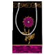 Saco bonito do presente feito no preto, com um olhar colorido orquídea da folha afiado no ouro, ao longo da parte inferior. Os gráficos de um ouro ornamentado e de uma decoração cor-de-rosa da beira do rolo da gema, funcionamentos através da parte superior do saco, com uma jóia da flor do ouro, no meio, com gema gostam de acentos. Personalize para adicionar o texto a este saco glamoroso do presente.